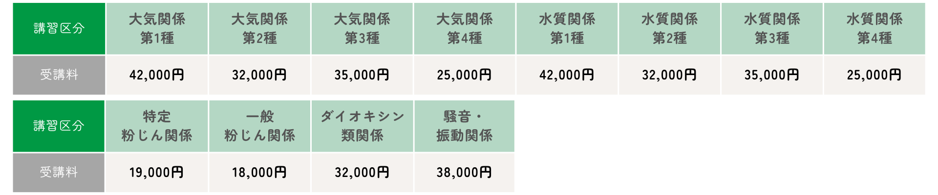 ◆公害防止管理者等資格認定講習及び受講料(非課税)